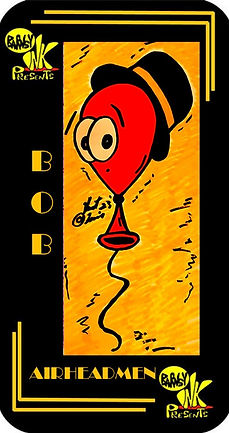 Wears a hat which is screwed on. His long string functions as a hand allowing him to eat; drink and grabs a tank of helium occasionally. Carries an emergency inhaler for those times he loses height. No feet to catch his fall, just a rear sort of.